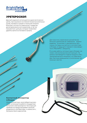 Опираясь на опыт мировых производителей, квалифицированный конструкторский отдел, широкие связи с передовыми европейскими клиническими центрами, компания разрабатывает гибкие и жесткие эндоскопические системы для урологии, гинекологии, ортопедии, отоларингологии, пульмонологии, гастроэнтерологии и лапароскопии.